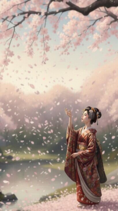 この魅力的なアートを通じて、日本の桜と舞妓の優雅さを体験してみてください!