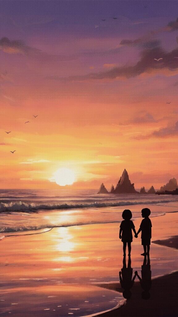この商品は、少年少女が手をつないで夕焼けを見つめる情景をテーマにした美しいアートです!穏やかな海と色鮮やかな夕焼けが印象的で、未来に向かっての希望を感じさせるお手伝いをします。