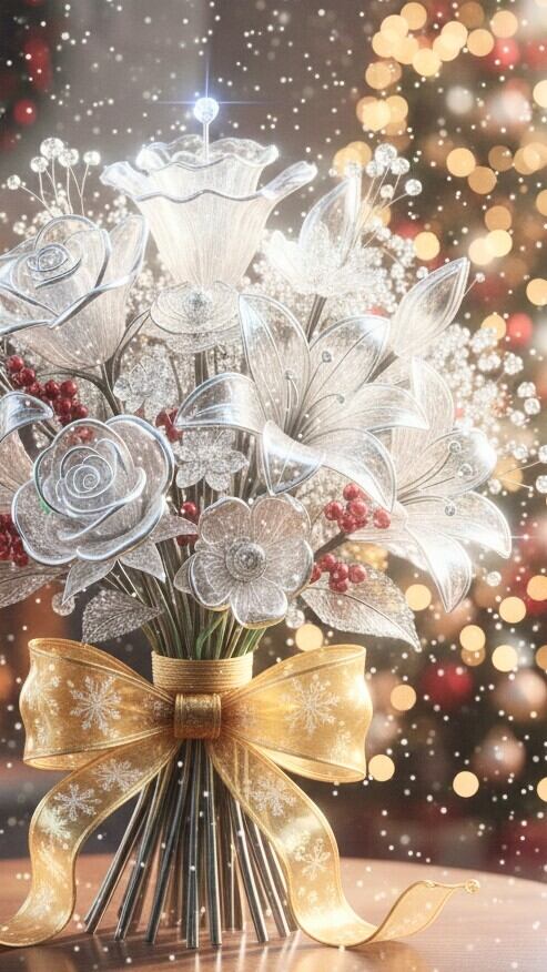 この商品は、美しいガラスで作られたブーケに金色のリボンをあしらった特別なアイテムです!その優雅なデザインと光り輝く金色が、あなたの空間に華やかさをもたらし、心を豊かにする瞬間を演出してくれます。